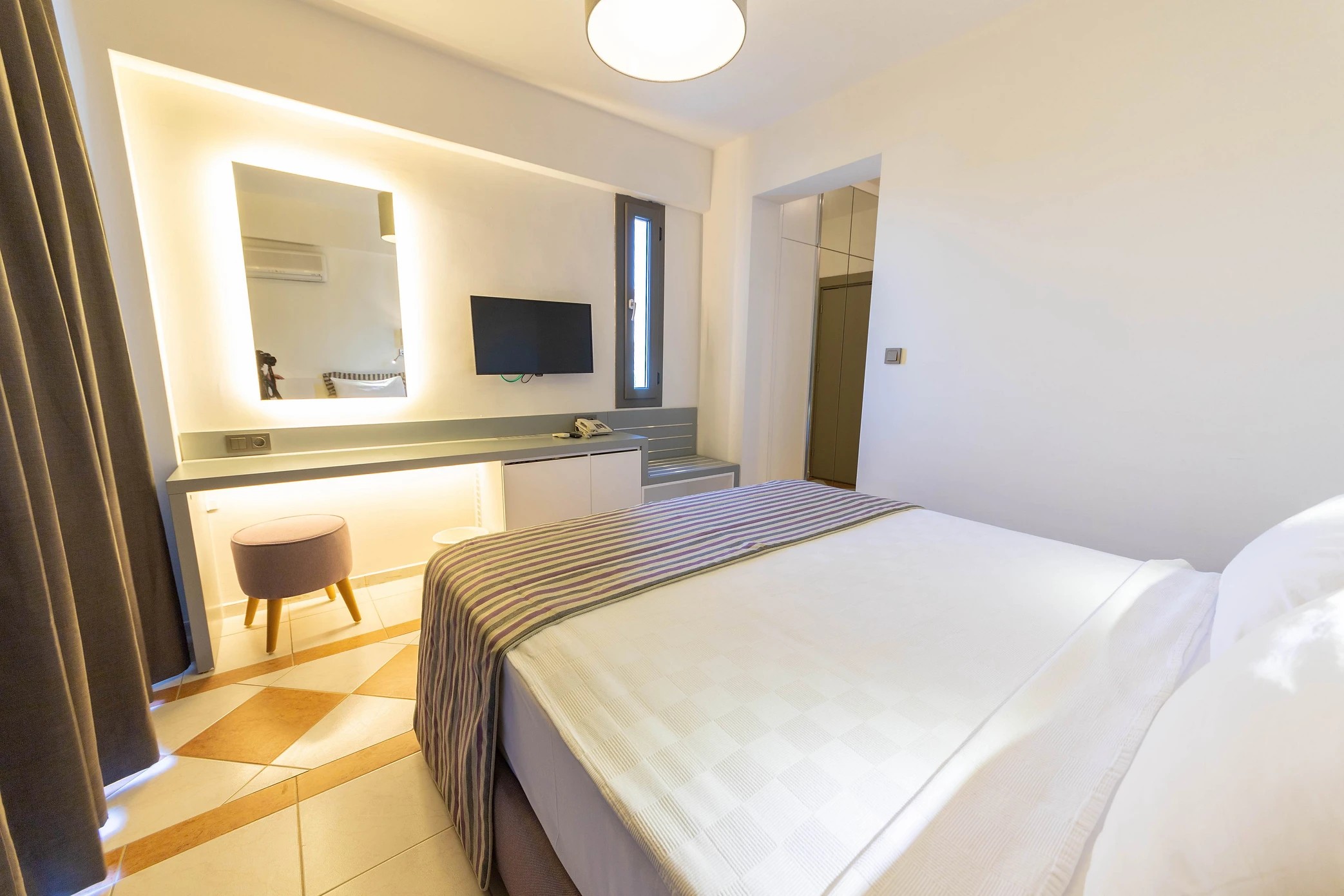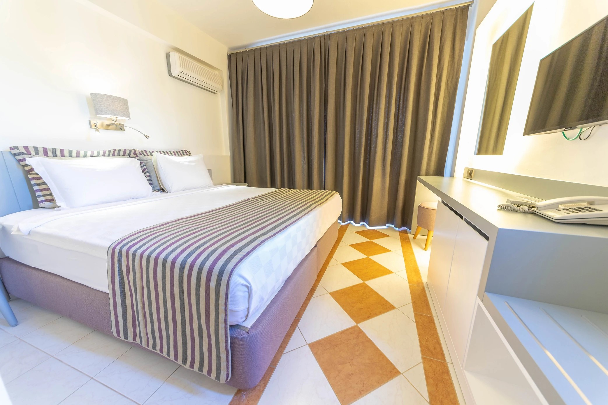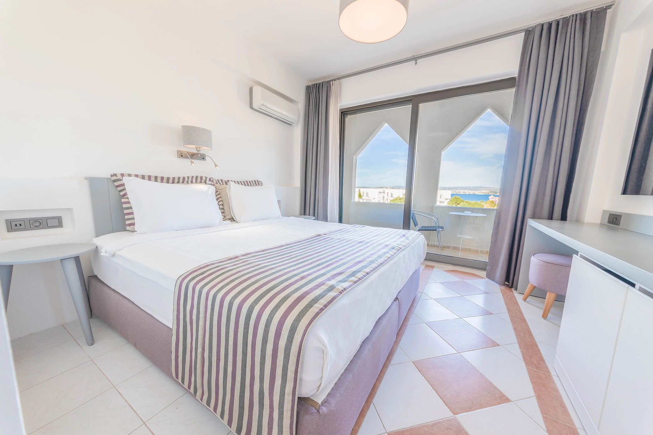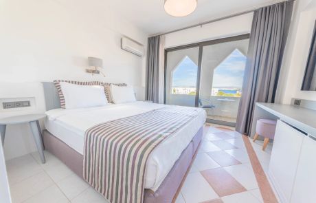 Deniz Manzaralı odalarımız Otelimizin 3. ve 4. katlarında sınırlı sayıda bulunmaktadır. Otelimizin Doğu tarafında bulunan Deniz manzaralı odalarımızda çift kişilik yatak veya iki ayrı yatak seçeneğimiz bulunmaktadır. Odalarımız balkonlu olup, yalnızca 1 adet bebek beşiği (park yatak) ilavesi ile konaklamaya uygundur.
