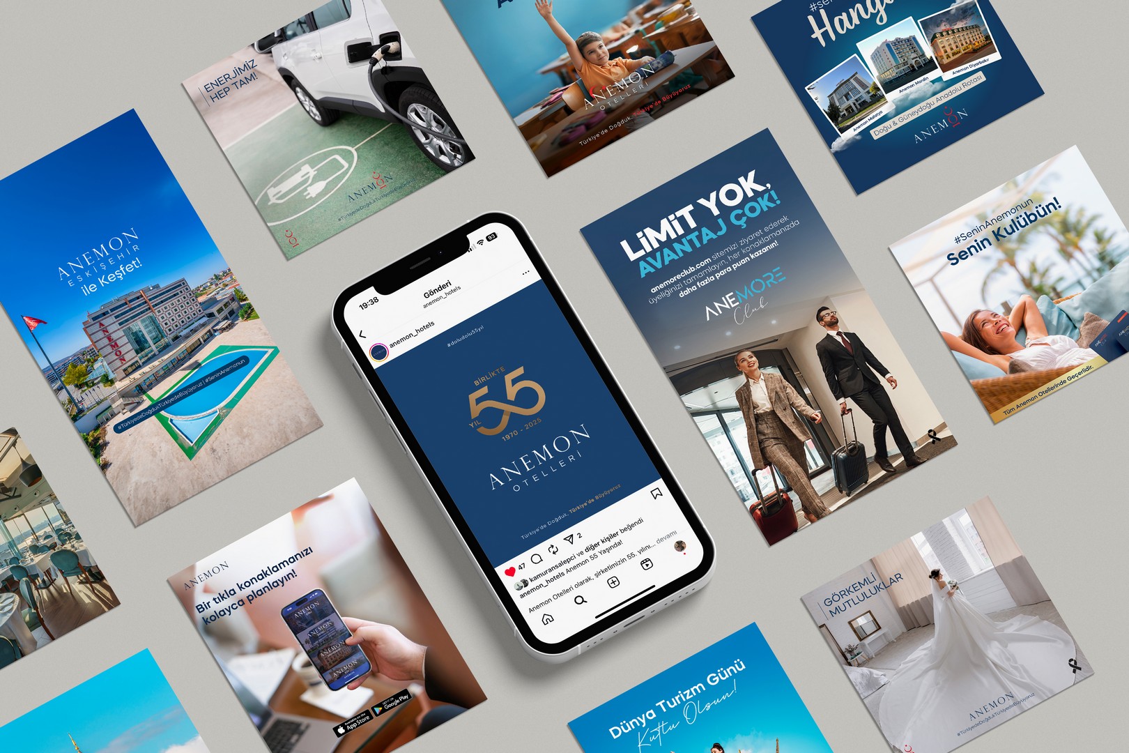 55 yıllık geçmişi, 9 alt markası ve 21 şehirde hizmet veren geniş organizasyonuyla geleneksel Anadolu misafirperverliğini modern konaklama deneyimiyle geleceğe taşımaktadır. “Türkiye’de Doğduk, Türkiye’de Büyüyoruz” ve “Türkiye’nin Yerli Otel Zinciri” sloganlarıyla “yerli ve milli” duruşunu ön plana çıkaran Anemon Otelleri’nin 360º marka iletişimi sürecinde yer almaktan mutluluk duyuyoruz.
